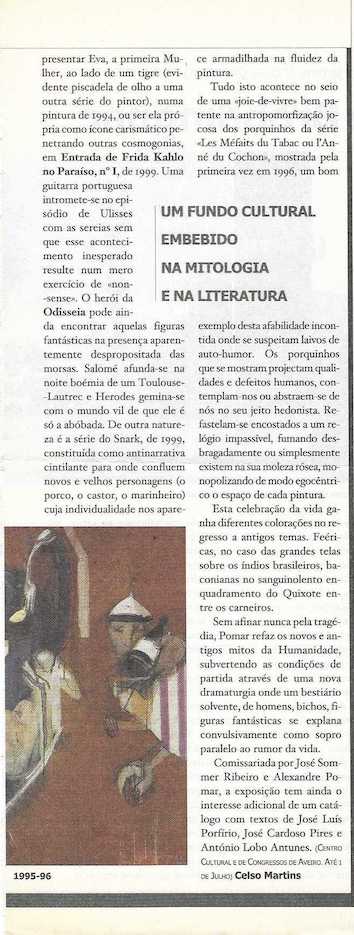 Textos críticos 2001, Pinturas Recentes, Aveiro. Tx de Celso Martins no Expresso/Cartaz 26.05.01 Partilhar isto: Click to share on X (Abre numa nova janela) X Clique para partilhar no Facebook (Abre numa nova janela) Facebook Gosto Carregando...
